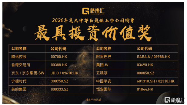 今年恰逢是中国资本市场发展30周年,站在新时代的起点,为致敬中国经济的价值创造者及发现者,11月16日,由格隆汇主办的“大中华区最佳上市公司·2020”颁奖典礼在成都隆重举行,星空娱乐国际集团荣获“年度最具投资价值奖”,同时荣获该奖项的还有阿里巴巴、腾讯、美团、京东等知名上市公司。